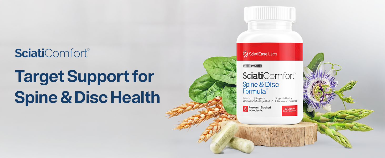 Targeted Spine & Disc Support: SciatiComfort is our expertly formulated disc support supplement that helps maintain spinal integrity and support disc health with clinically researched mineral supplements that work synergistically to promote structural wellness throughout your spine and surrounding areas for enhanced daily comfort and mobility.